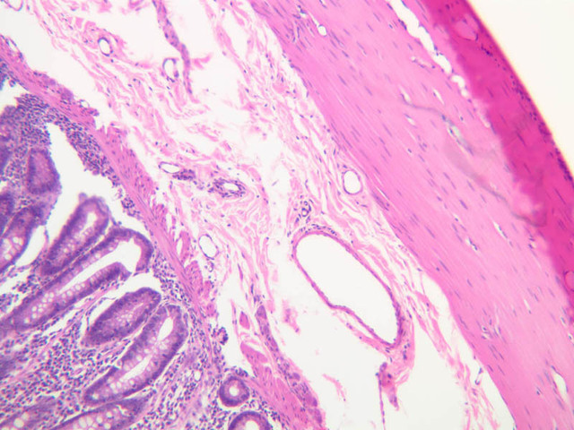 13 Smooth Muscle SM H&E b24 vascular bed colon 40x labeled.jpgB24, Colon, 40x