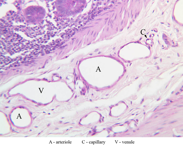 10 Small Vein SV H&E b23 vascular bed colon 20x labeled.jpgB23, Colon, 20x