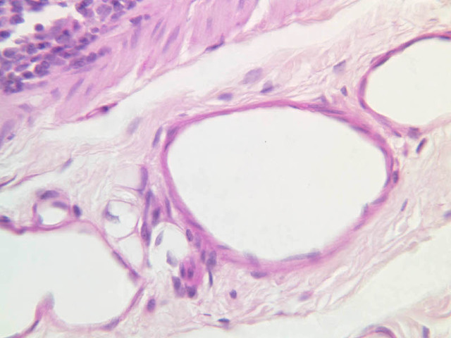 26 Small Vein SV H&E b23 vascular bed colon 20x labeled.jpgB23, Colon, 20x; b83 medium sized vein spermatic cord 20x labeled.jpgB83, Spermatic Cord, 20x