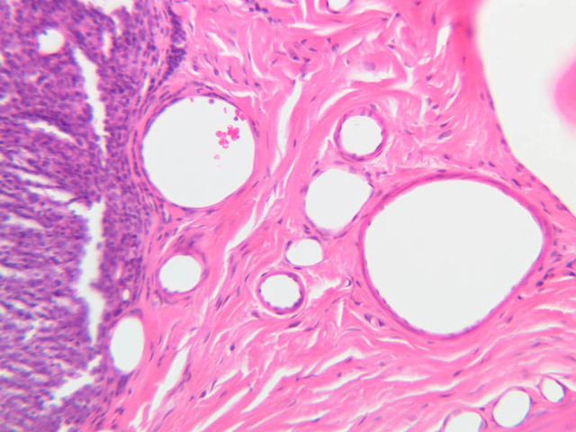 2 Tunica Media TM H&E a28 renal vein 10x labeled.jpgA28, Renal Vein, 10x; b83 medium sized vein spermatic cord 20x labeled.jpgB83, Spermatic Cord, 20x