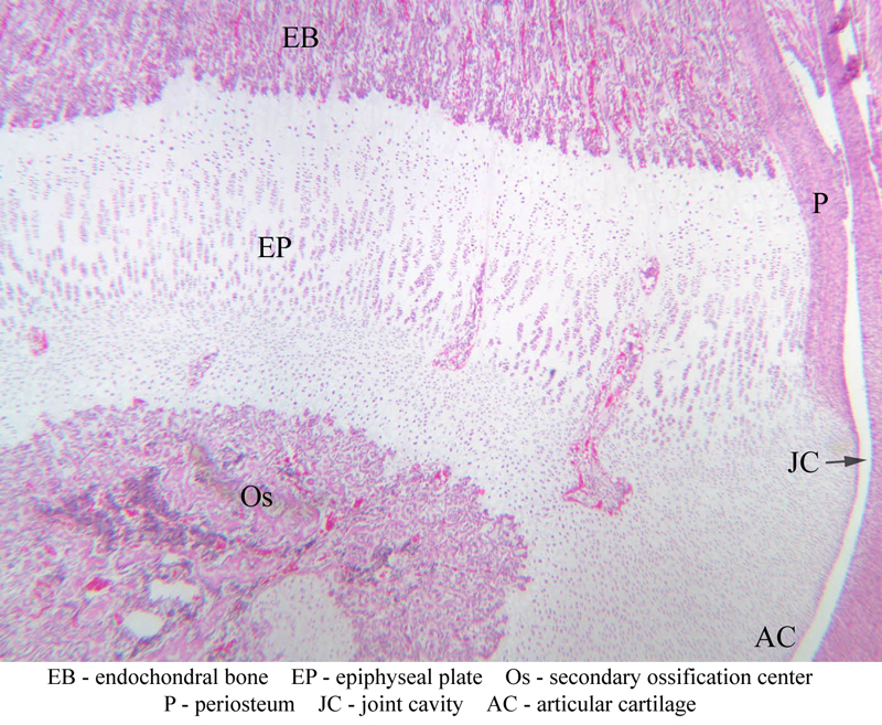 47 Epiphyseal Plate EP H&E a9 growth plate knee joint 2x labeled.jpgA9, Knee Joint, 2.5x