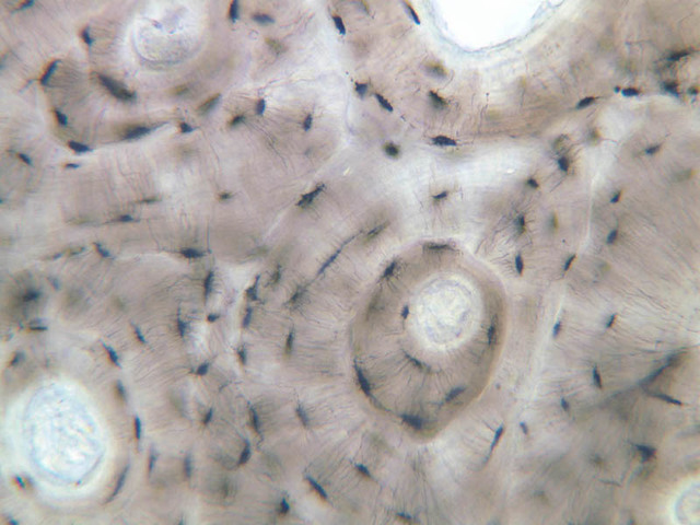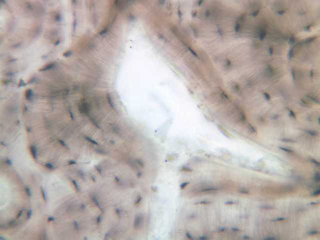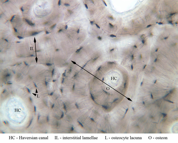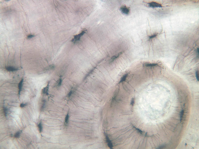 3 Osteocyte Lacuna L Ground a1 compact bone 20x ground labeled.jpgA1, Compact Bone, 20x