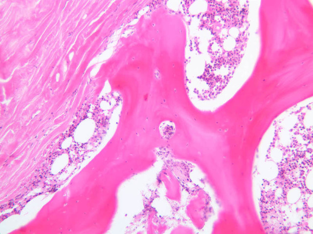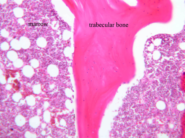 28 Endosteum (none) H&E a3b trabecular bone 20x labeled.jpgA3, Intervertebral Disk, 20x