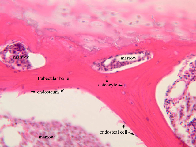 8 Endosteum (none) H&E a3b trabecular bone 20x labeled.jpgA3, Intervertebral Disk, 20x
