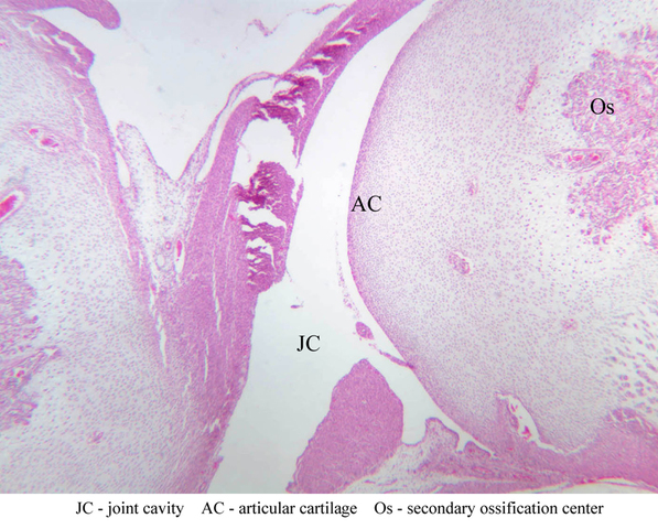 3 Secondary Ossification Center Os H&E a9 articular cartilage knee joint 2x labeled.jpgA9, Knee Joint, 2.5x