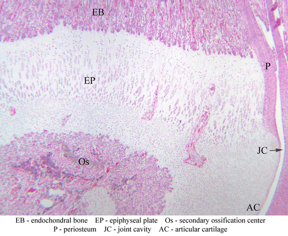 5 Epiphyseal Plate EP H&E a9 growth plate knee joint 2x labeled.jpgA9, Knee Joint, 2.5x