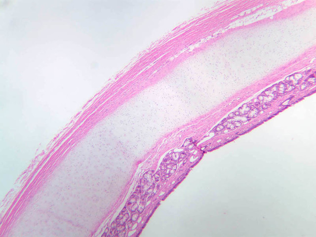 11 Pseudostratified Columnar Epithelium (none) H&E a75 hyaline cartilage trachea 20x he labeled.jpgA75, Trachea, 20x
