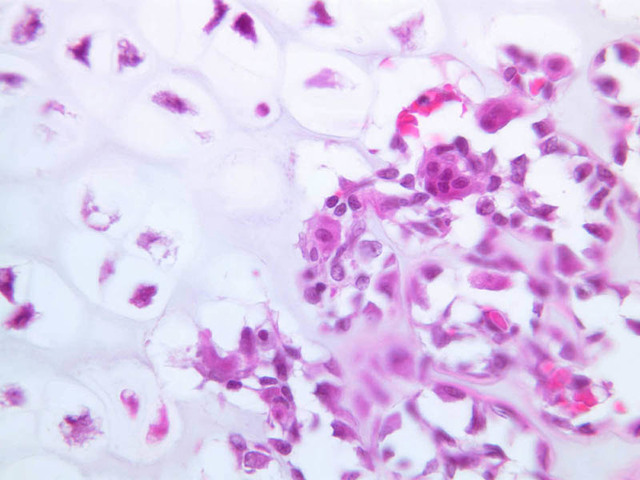 7 Hypertrophic Cartilage Cell HC H&E a9 secondary ossification 40x labeled.jpgA9, Knee Joint, 40x