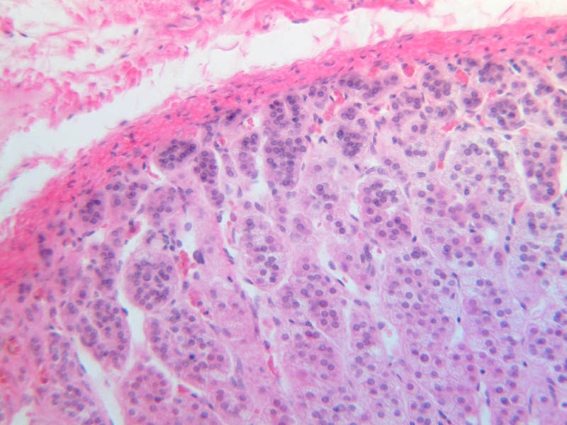 The zona glomerulosa is located immediately beneath the capsule (B-60 adrenal