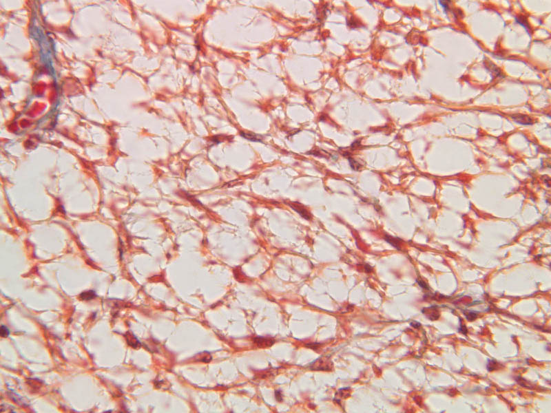 It is characterized by irregular, interconnecting cords of cells which are separated by