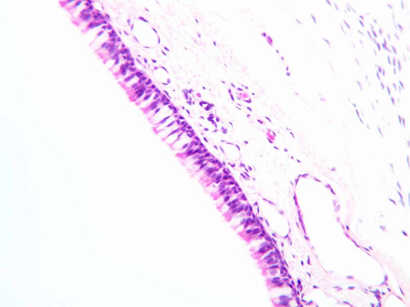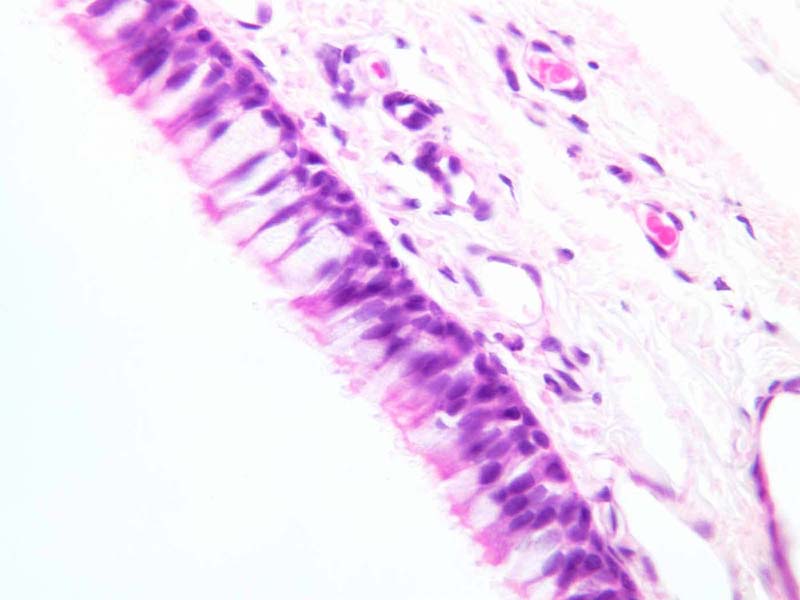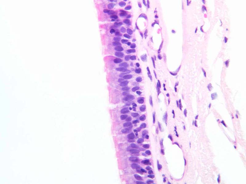 2 Motile Cilia (none) H&E a75d pseudostratified epithelium trachea 40x labeled.jpgA75, Trachea, 40x