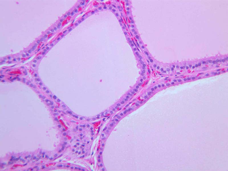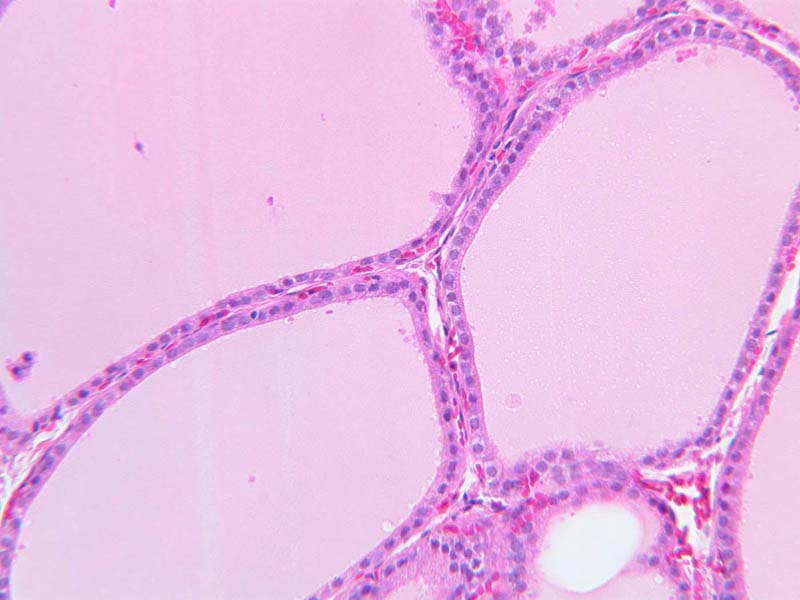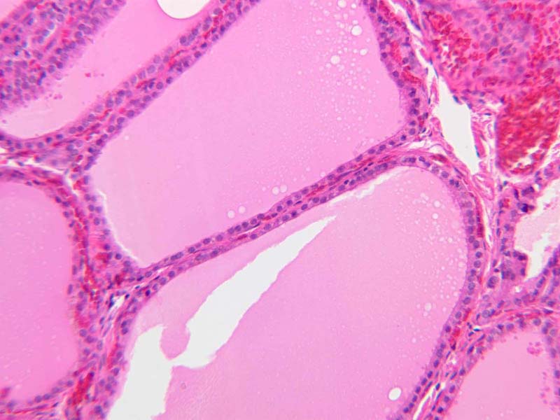 3 Thyroid Follicle (none) H&E b52 simple cuboidal epithelium thyroid 40x labeled.jpgB52, Thyroid, 40x