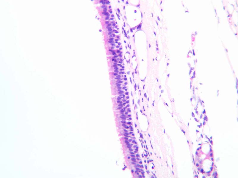 2 Motile Cilia (none) H&E a75d pseudostratified epithelium trachea 40x labeled.jpgA75, Trachea, 40x