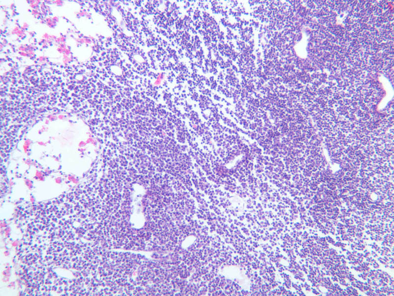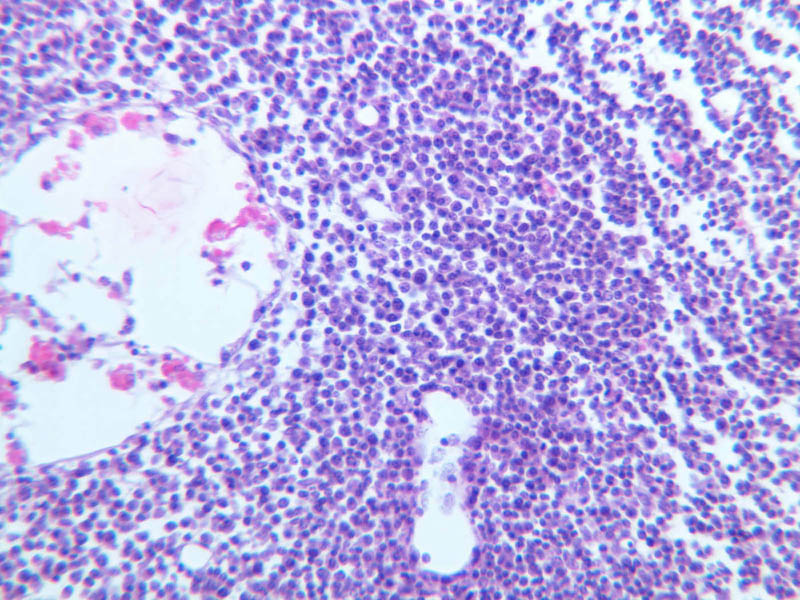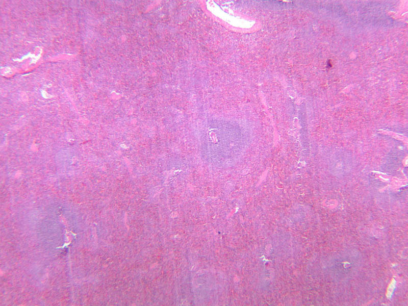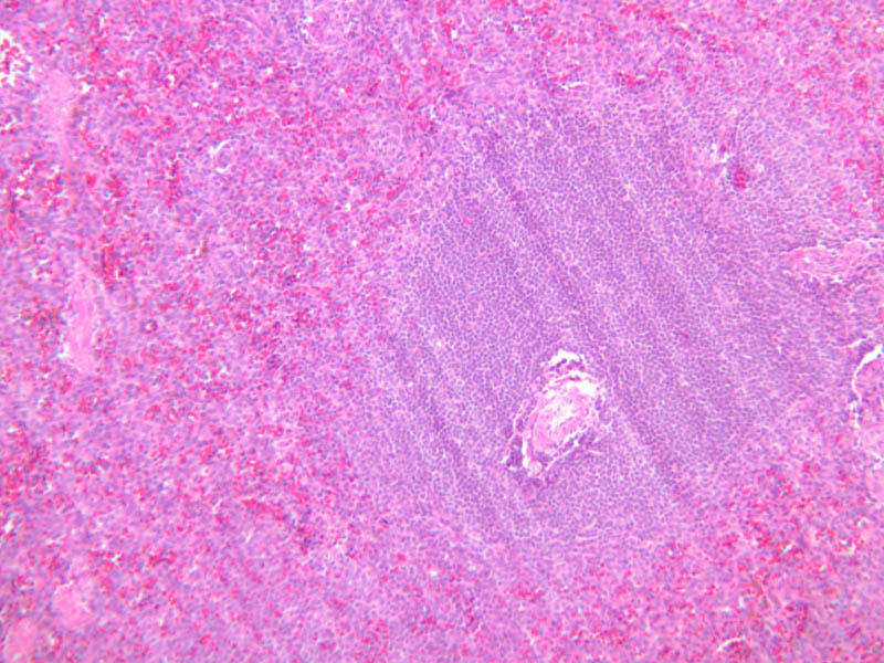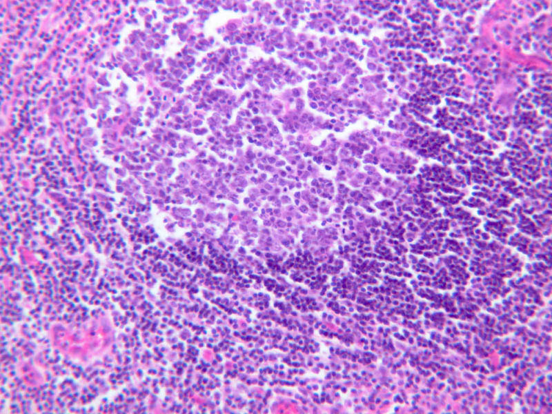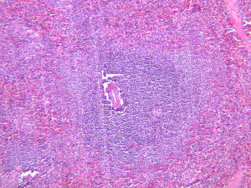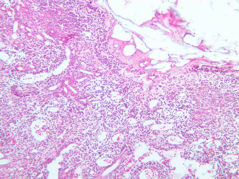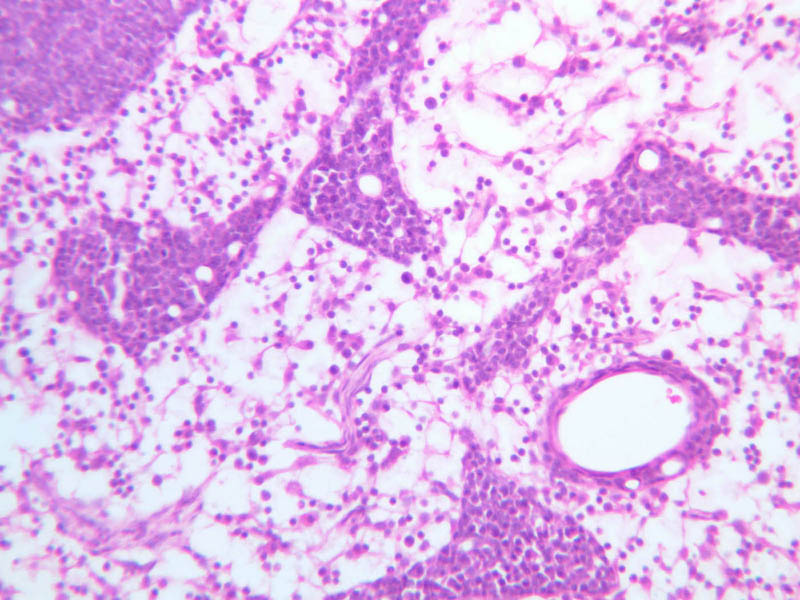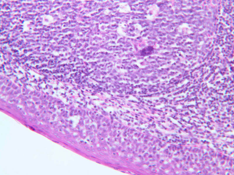 Now look at the medullary region where lymphocytes are sparser (A-44, H&E