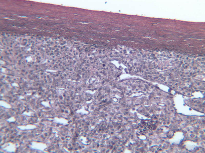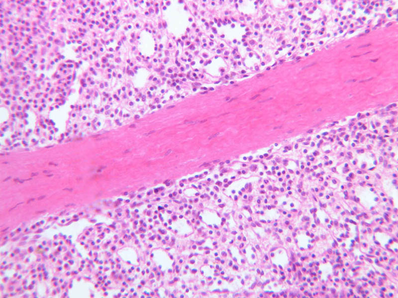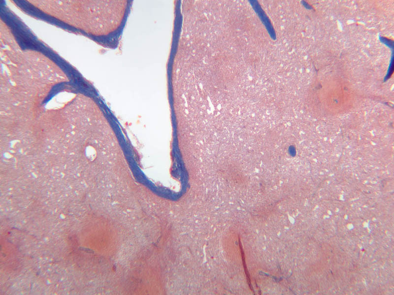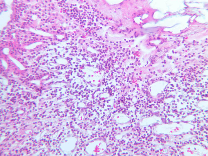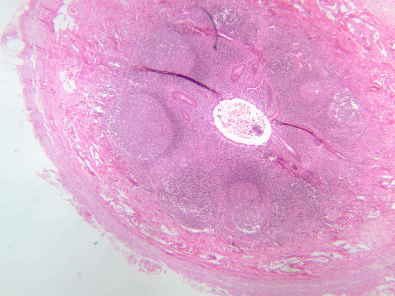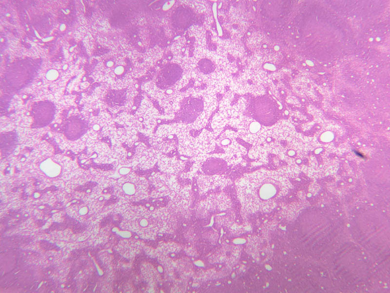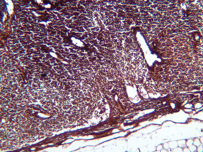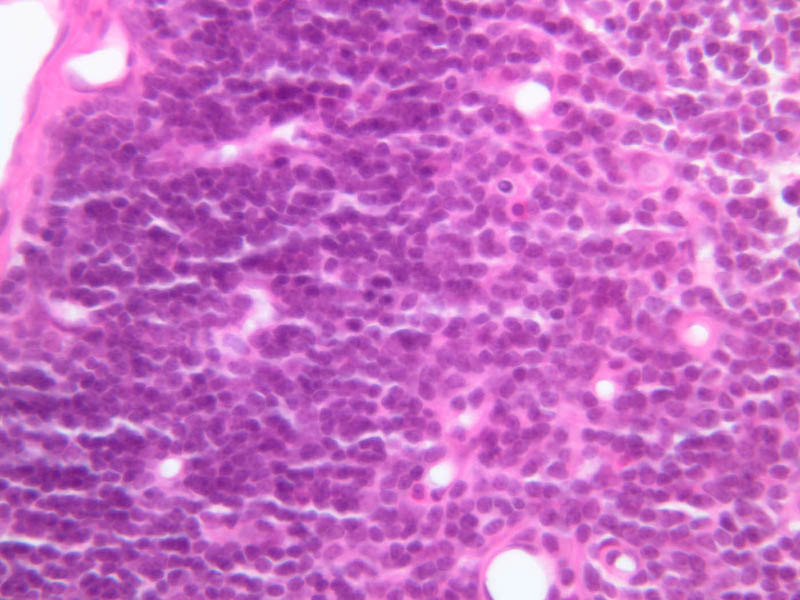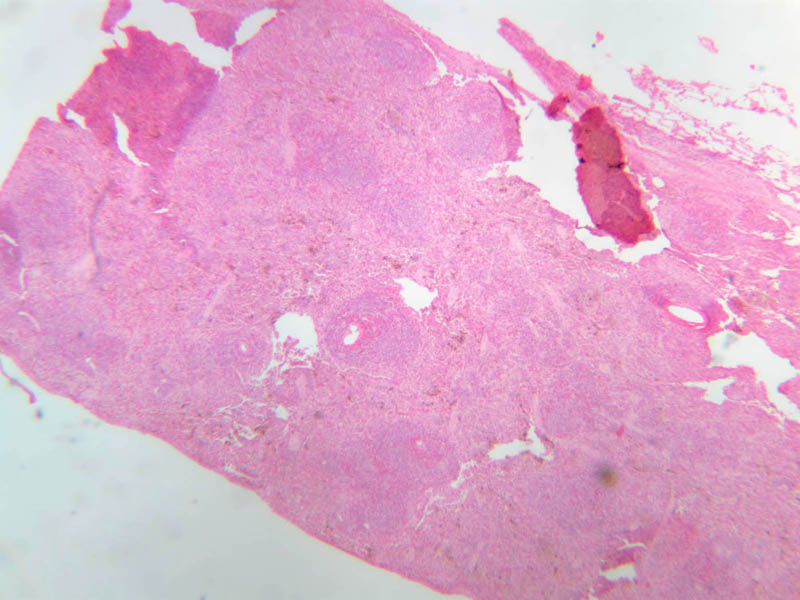 Now look at the medullary region where lymphocytes are sparser (A-44, H&E