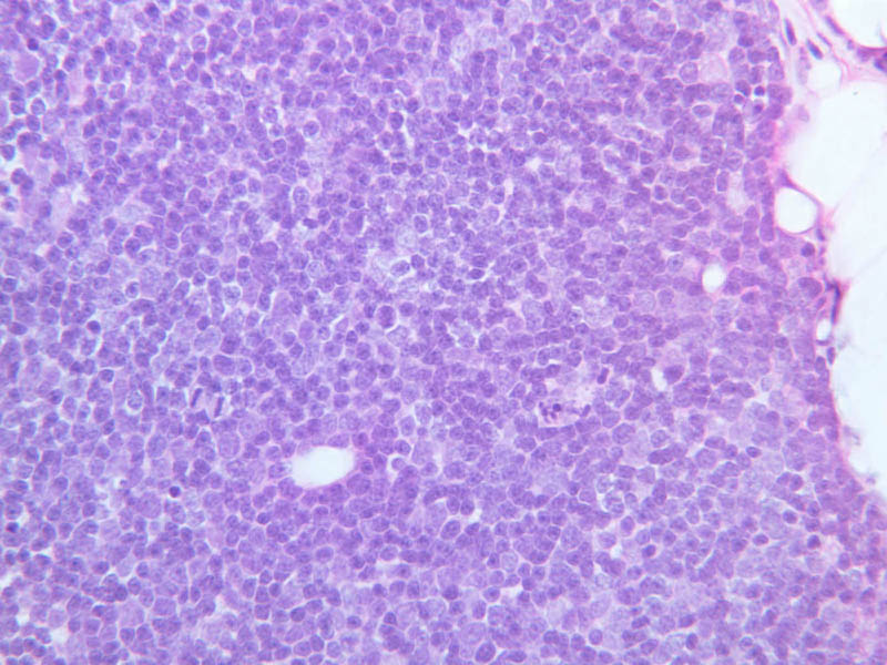 lymphoblasts. Also try to discern large cells with acidophilic cytoplasm and large nuclei