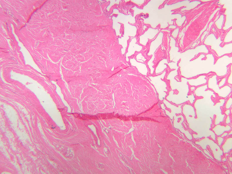 Be aware, however, that most of the empty-appearing interstitial spaces in these slides are