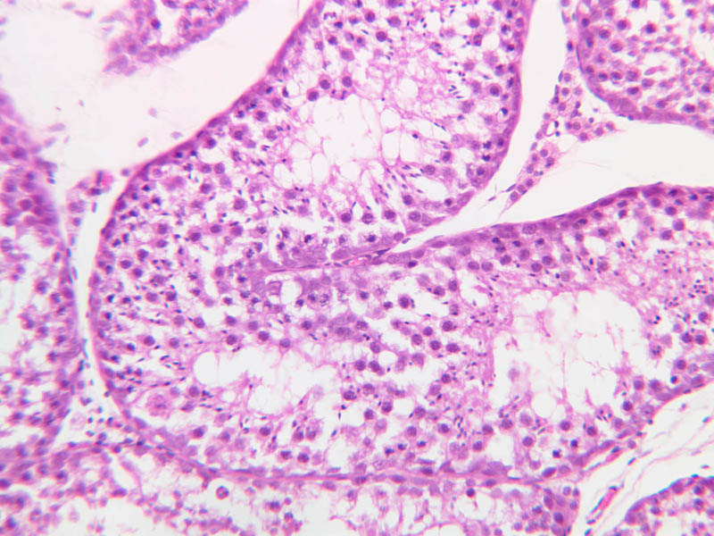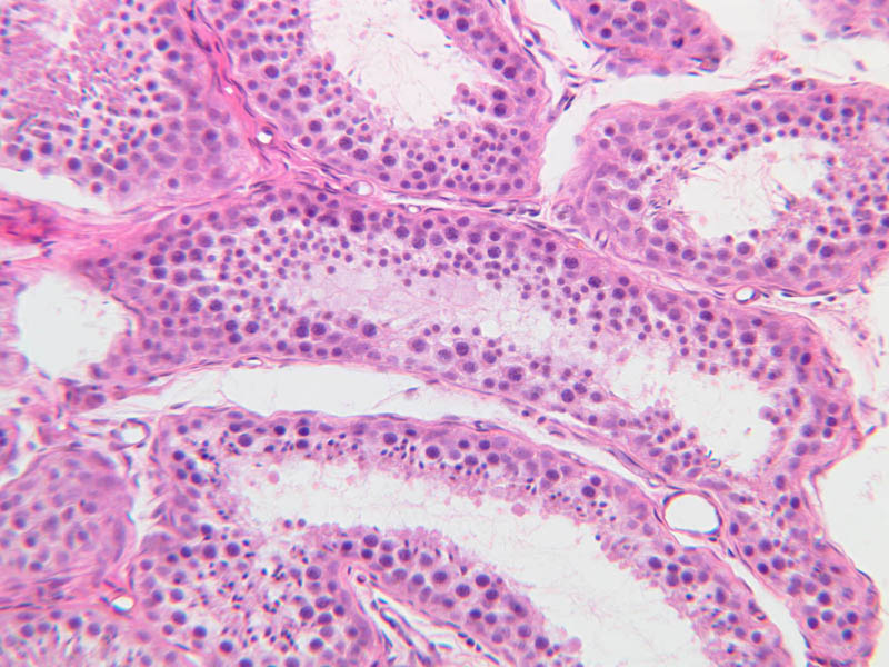 The clearly stratified seminiferous epithelium differs in appearance from one