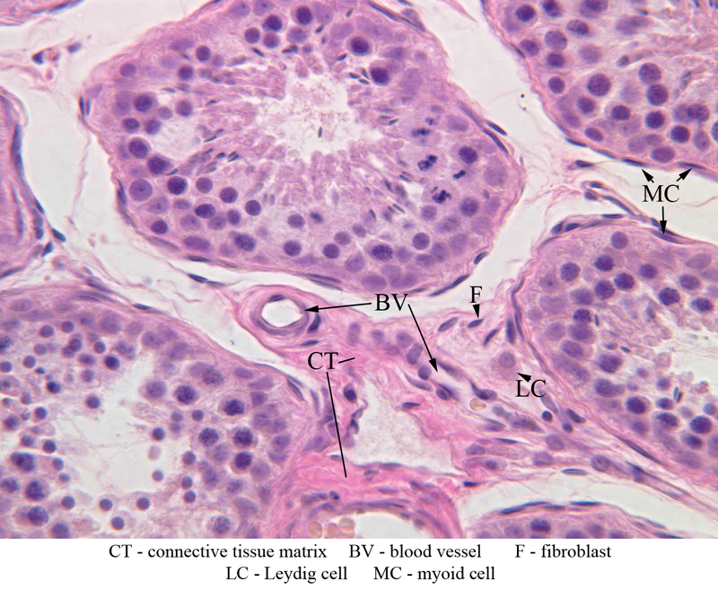 between the seminiferous tubules is occupied by a loose connective tissue matrix that is