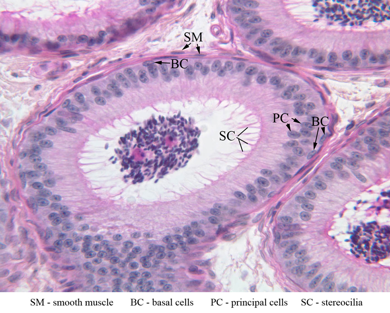 the microscopic anatomy of many components of the male reproductive system,