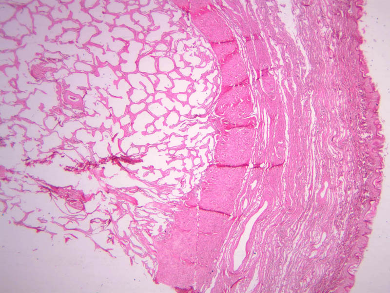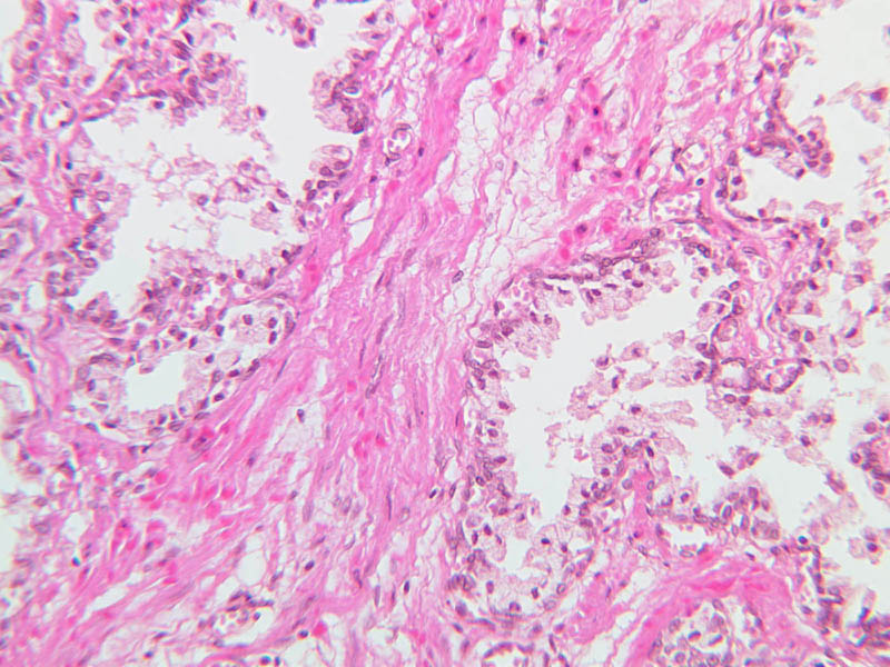 Be aware, however, that most of the empty-appearing interstitial spaces in these slides are