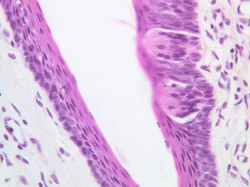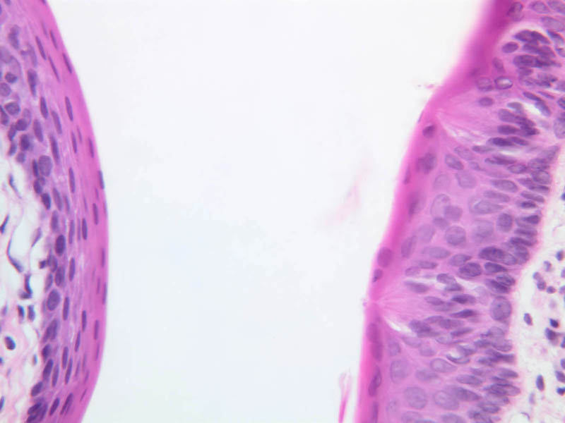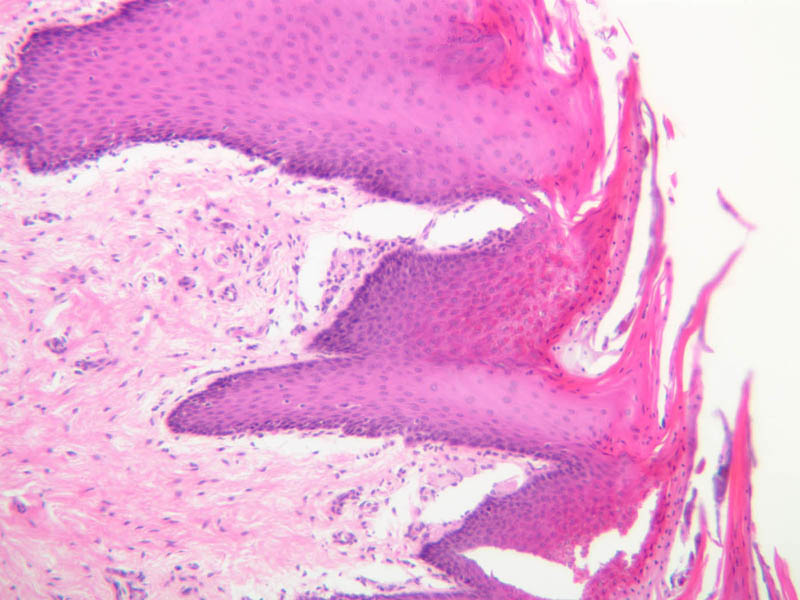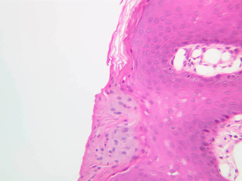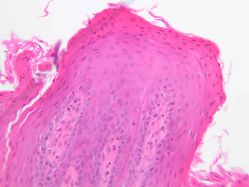 4 Keratin (none) H&E a55 lip transition 2x labeled.jpgA55, Lip, 2.5x