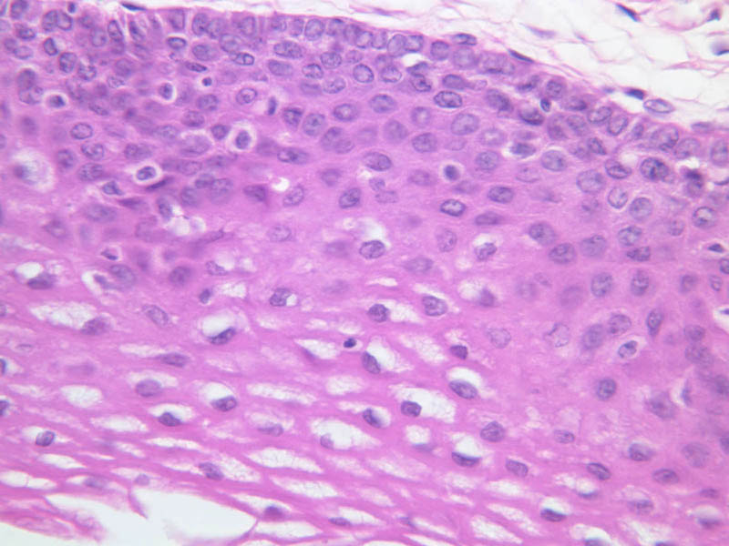 28 Lingual Surface (of Epiglottis) (unlabeled) H&E a67 epiglottis lingual surface 20x.jpgA67, Epiglottis, 20x