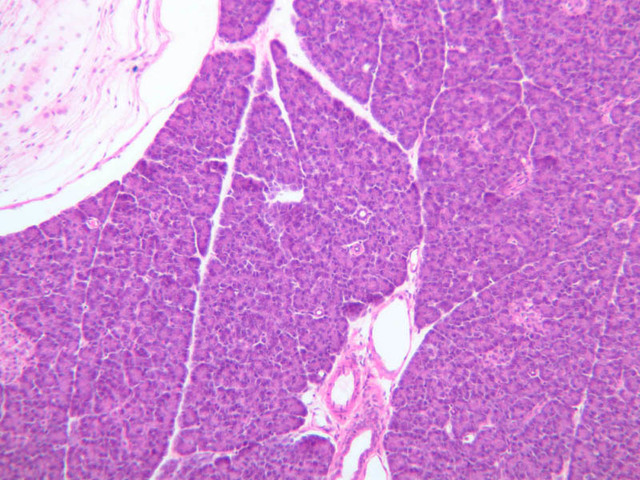 7 Interlobular Duct IrD H&E b36 interlobular duct pancreas 10x labeled.jpgB36, Pancreas, 10x