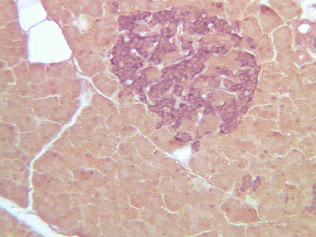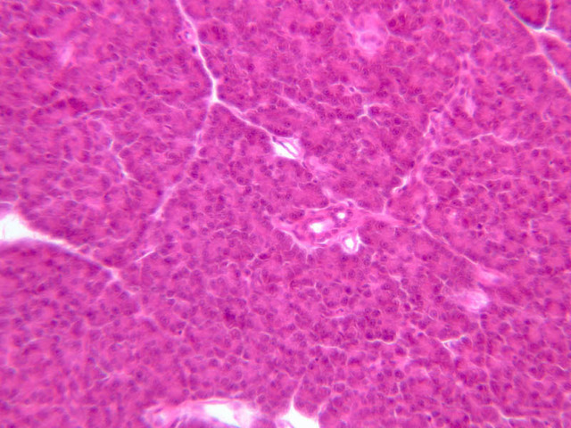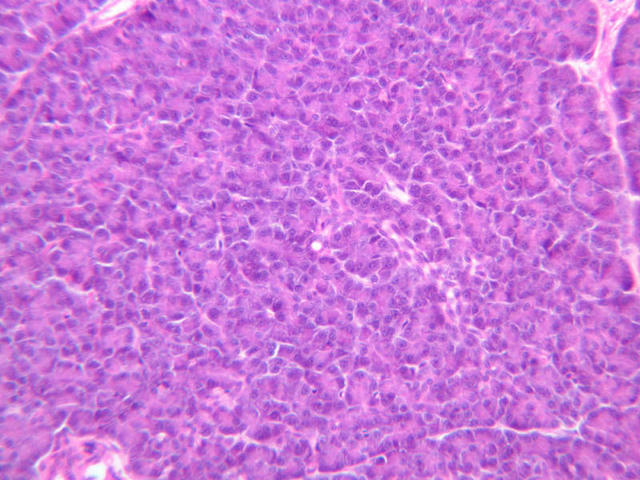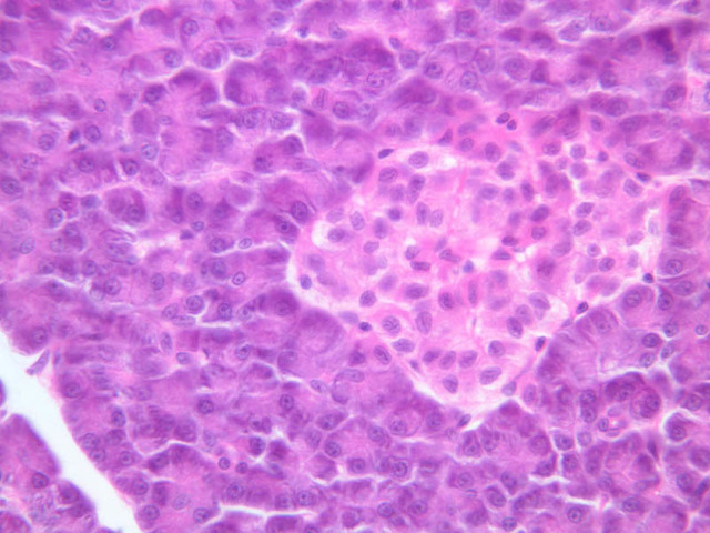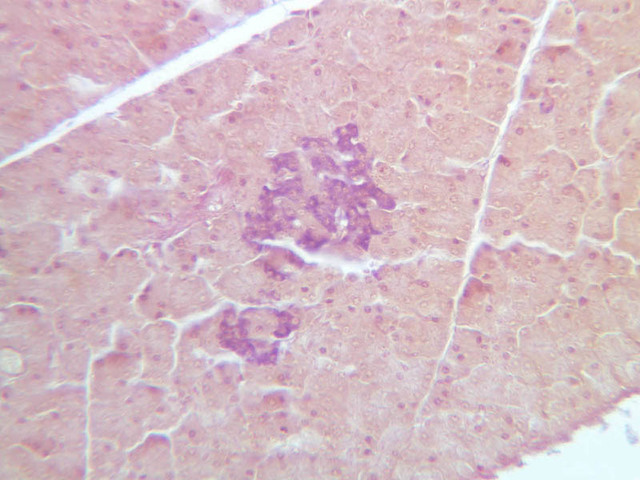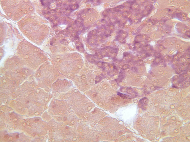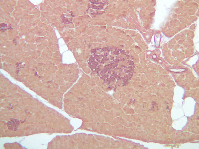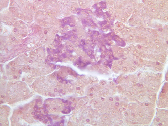 10 A Cells A H&E b36 islets of langerhans pancreas 40x labeled.jpgB36, Pancreas, 40x