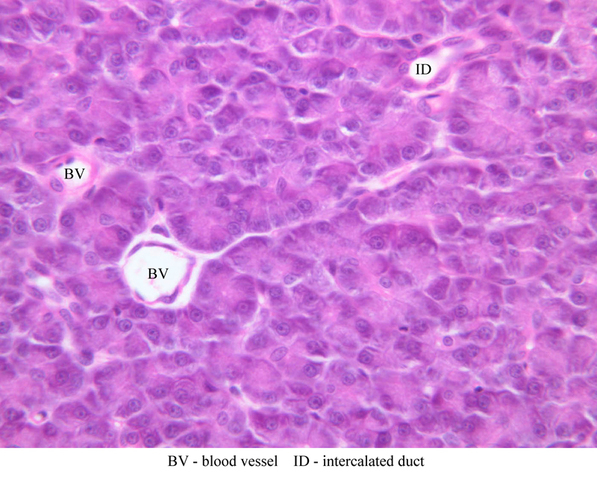5 Blood Vessel BV H&E b36b intercalated duct pancreas 40x labeled.jpgB36, Pancreas, 40x