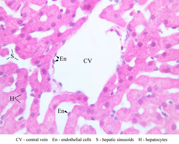 2 Endothelial Cells En H&E b29 central vein liver 40x labeled.jpgB29, Liver, 40x