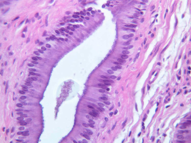 4 Columnar Epithelium Ep H&E b33 gallbladder 40x labeled.jpgB33, Gallbladder, 40x