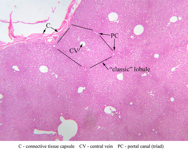 5 Connective Tissue Capsule C H&E b29b central vein liver 2x labeled.jpgB29, Liver, 2.5x