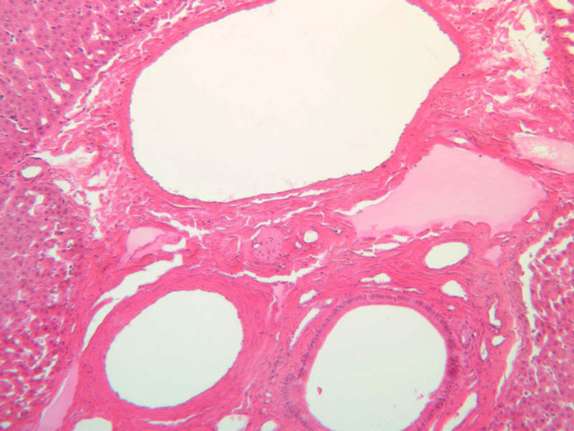 22 Bile Duct BD H&E, PAS b29 portal triad 40x labeled.jpgB29, Liver, 40x; b30 portal triad 10x labeled.jpgB30, Liver, 10x; b31b liver 40x pas labeled.jpgB31, Liver, 40x