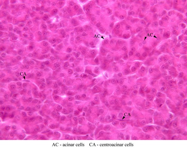 4 Centroacinar Cells CA H&E b36 acinar cells pancreas 40x labeled.jpgB36, Pancreas, 40x