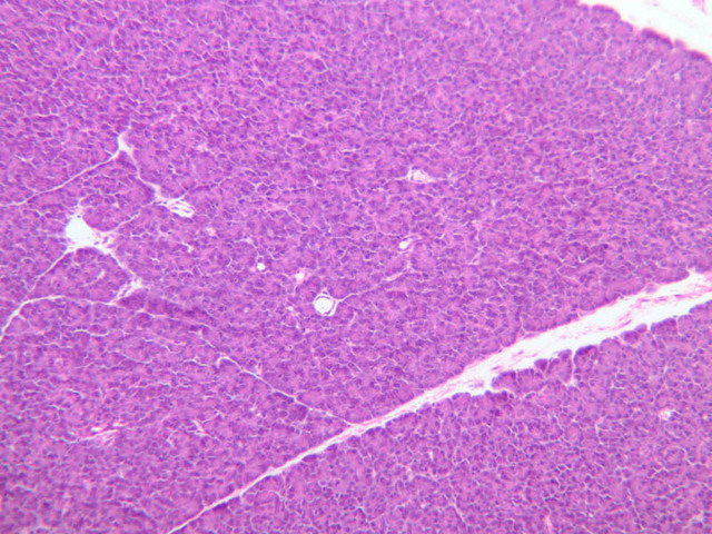 1 Exocrine Pancreas (none) H&E b36b pancreas 40x labeled.jpgB36, Pancreas, 40x
