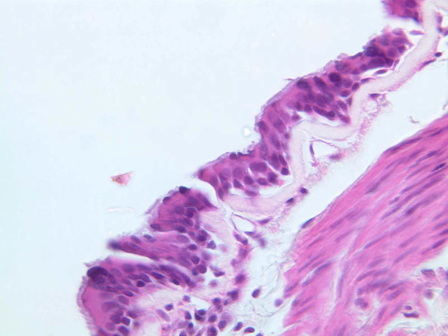 1 Ciliated Pseudostratified Epithelium CC PAS a72 pseudostratified epithelium trachea 40x pas labeled.jpgA72, Trachea, 40x