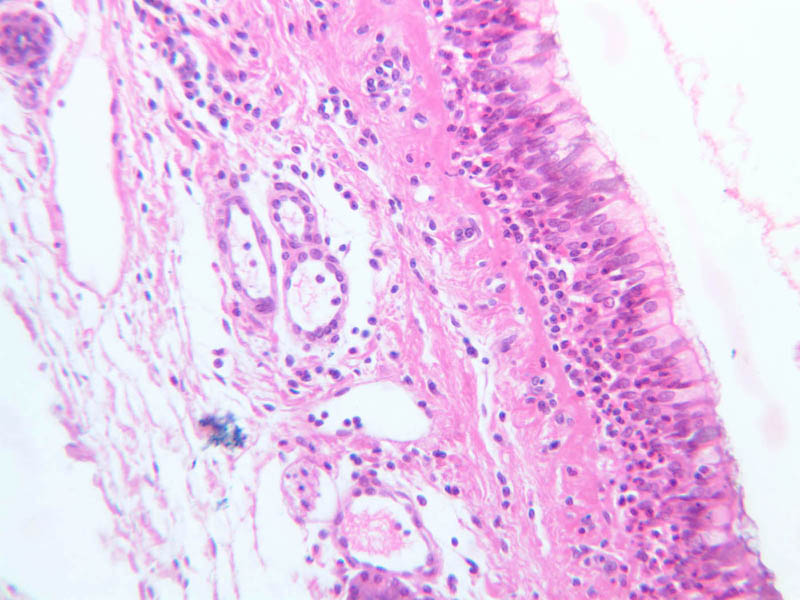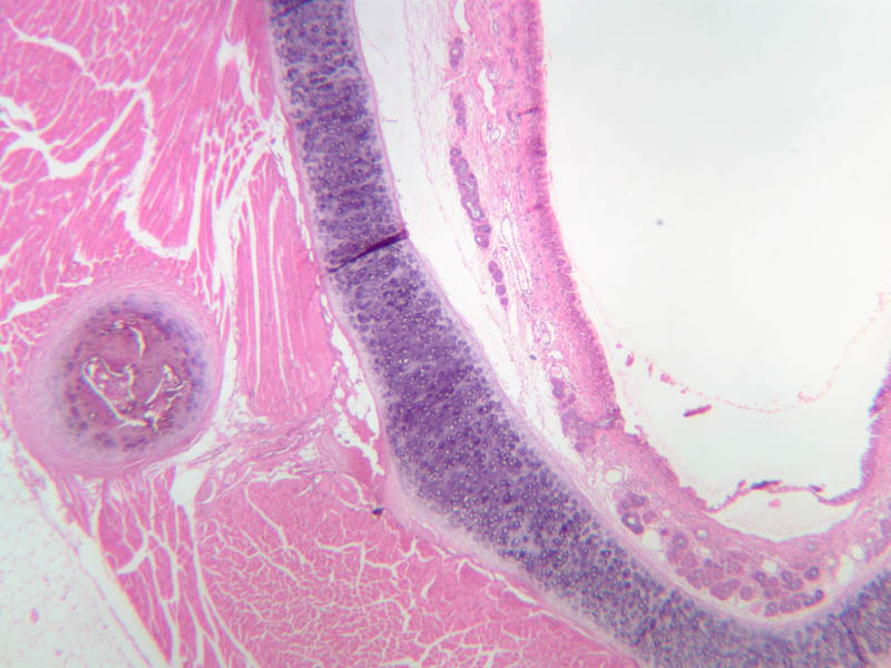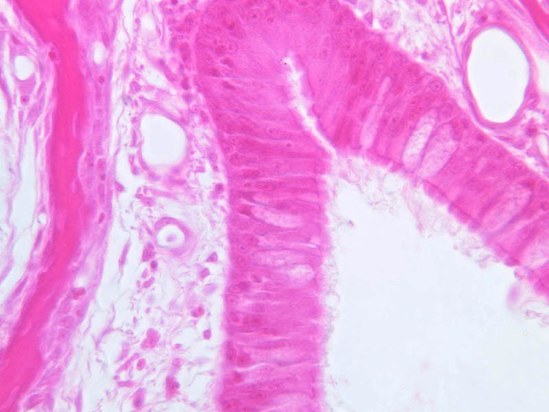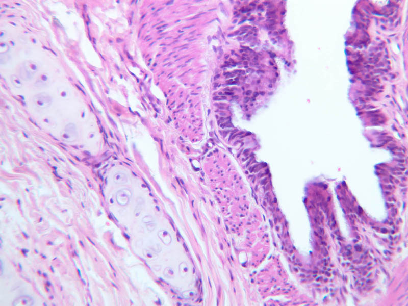 26 Pseudostratified Epithelium (none) H&E a74 bronchus 10x labeled.jpgA74, Lung, 10x