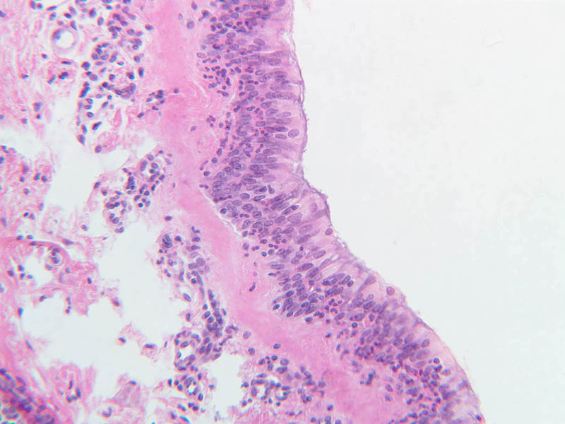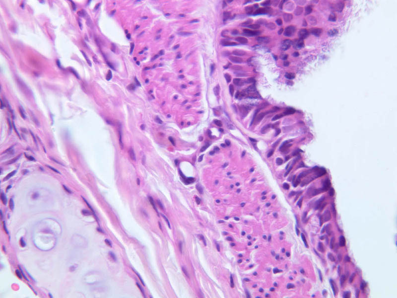 3 Pseudostratified Epithelium (none) H&E a74 bronchus 10x labeled.jpgA74, Lung, 10x