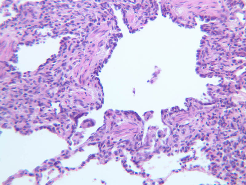 15 Knobs of Smooth Muscle (none) H&E a74 alveoli 20x labeled.jpgA74, Lung, 20x