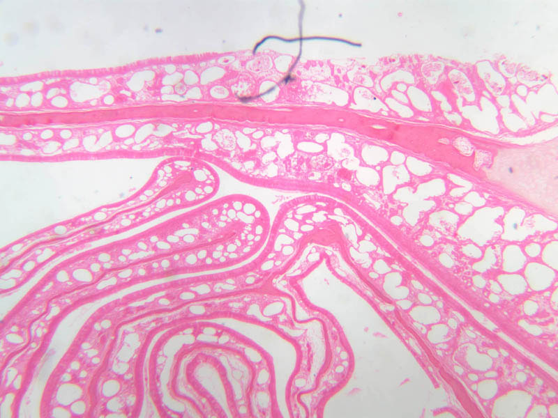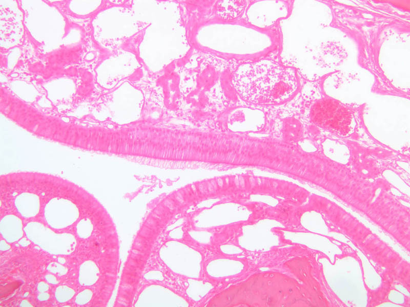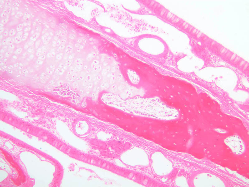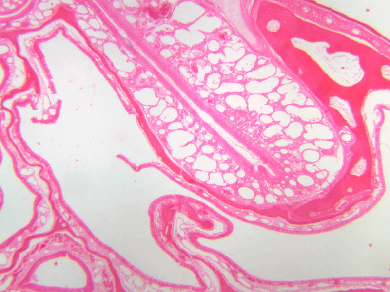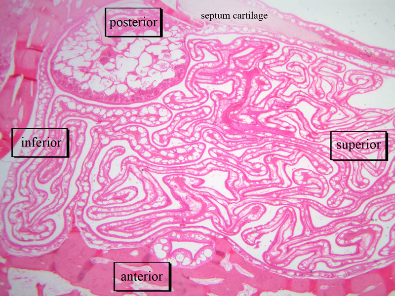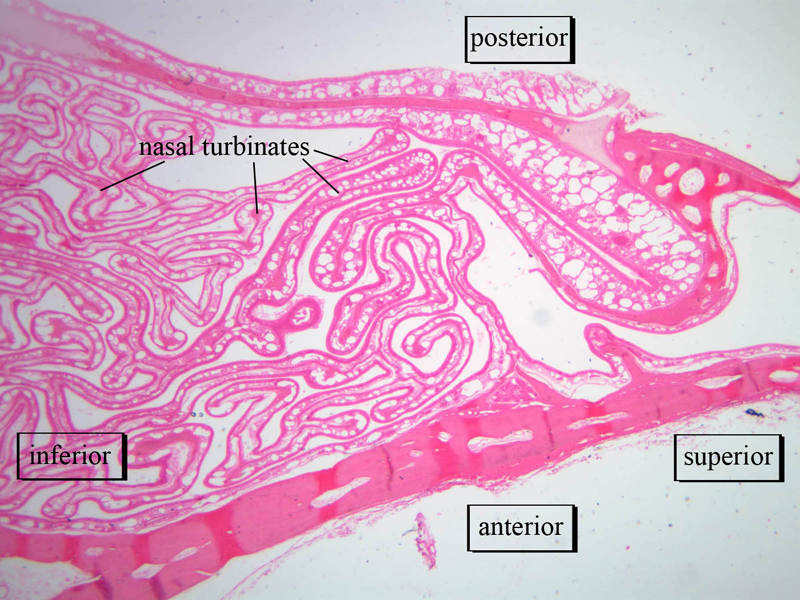3 Turbinate Bone (none) H&E a70 respiratory epithelium nose 10x labeled.jpgA70, Nasal Cavity, 10x