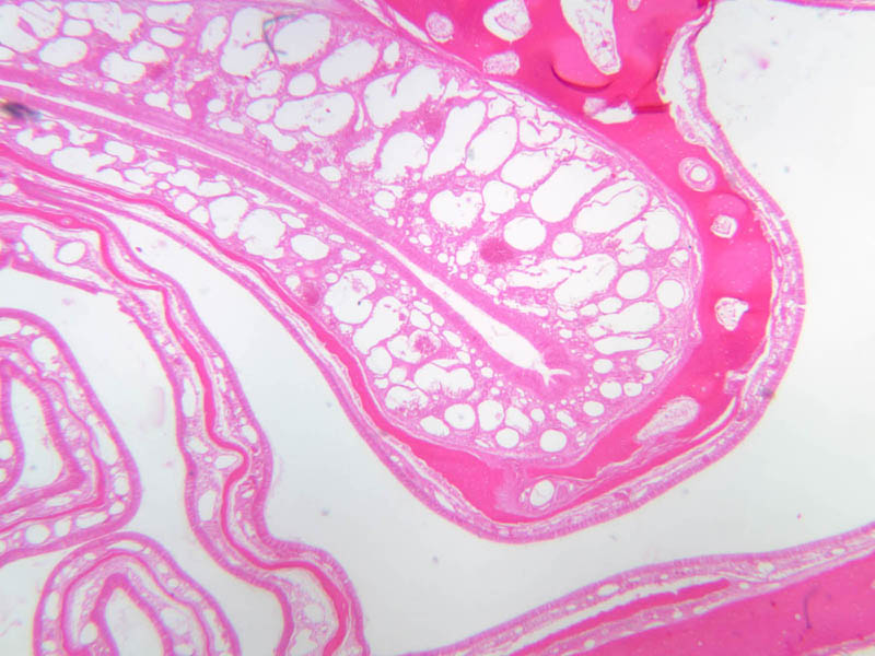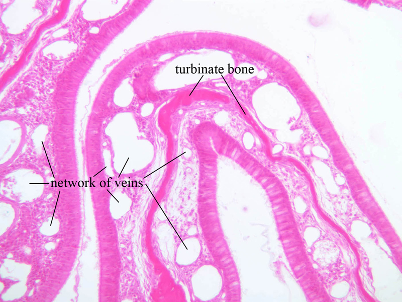 4 Network of Veins (none) H&E a70 respiratory epithelium nose 10x labeled.jpgA70, Nasal Cavity, 10x