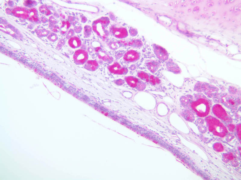 18 Submucosa (none) PAS a72 smooth muscle trachea 2x pas labeled.jpgA72, Trachea, 2.5x