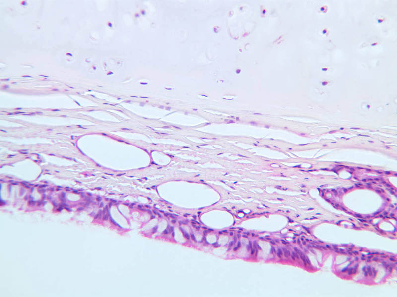 2 Respiratory Epithelium (none) H&E a70 nasal epithelium 20x labeled.jpgA70, Nasal Cavity, 20x