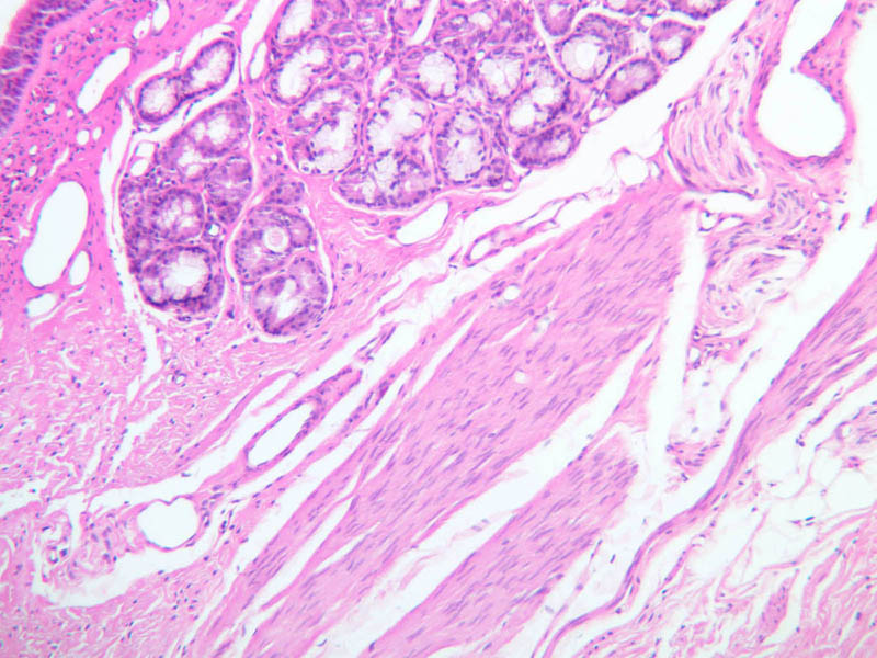 7 Submucosa (none) PAS a72 smooth muscle trachea 2x pas labeled.jpgA72, Trachea, 2.5x