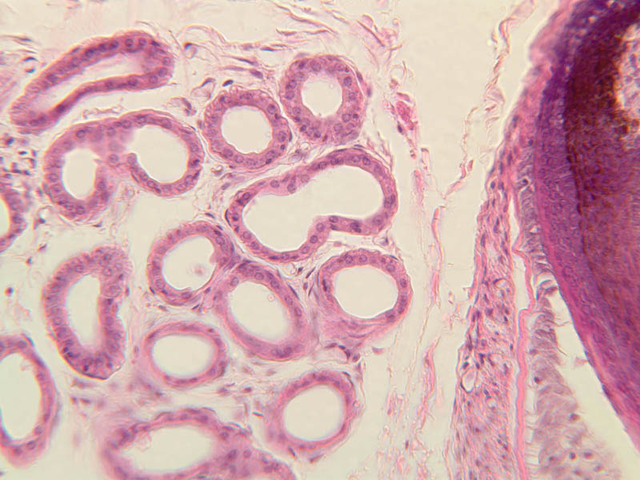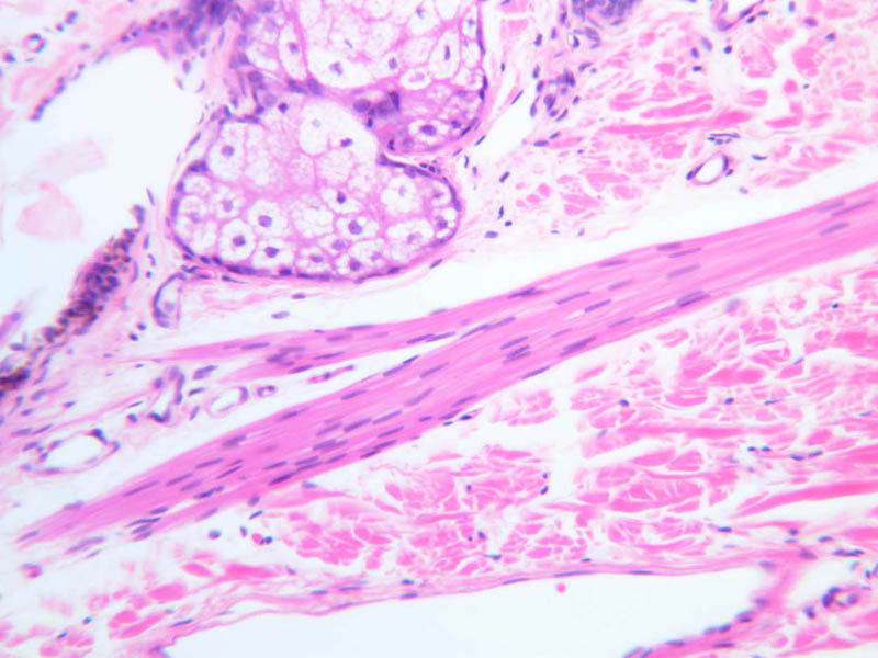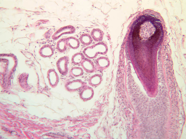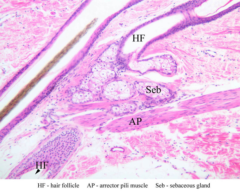 sebaceous gland. These muscles are under autonomic nervous control (sympathetic).