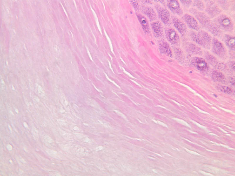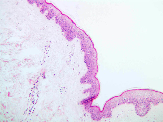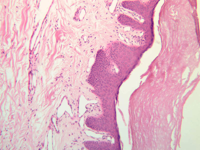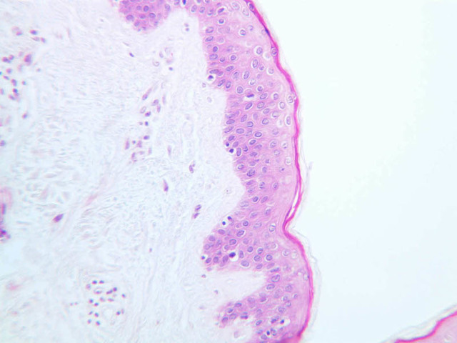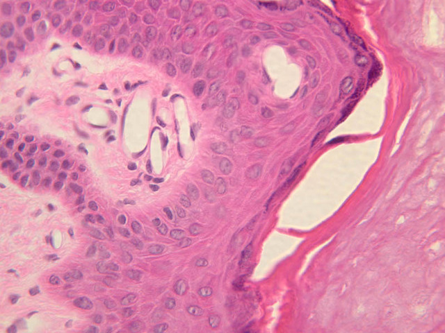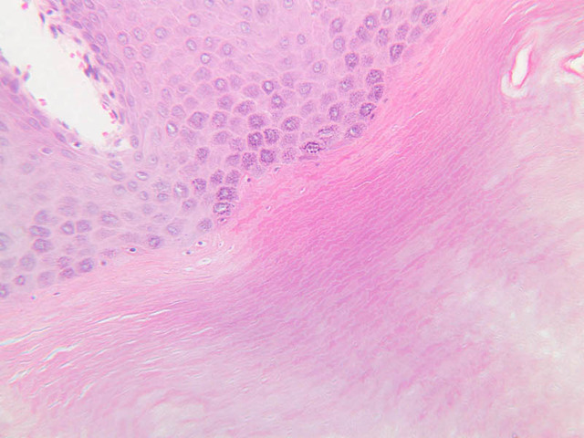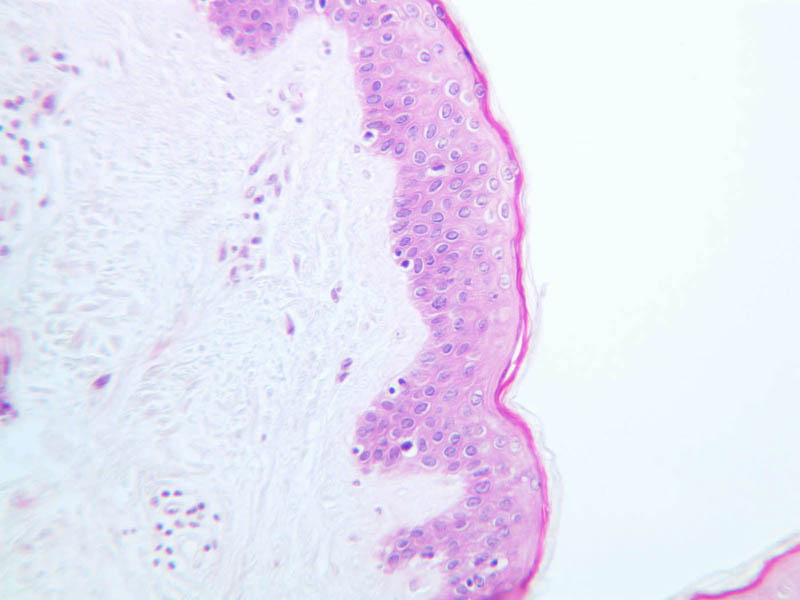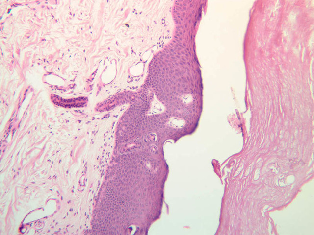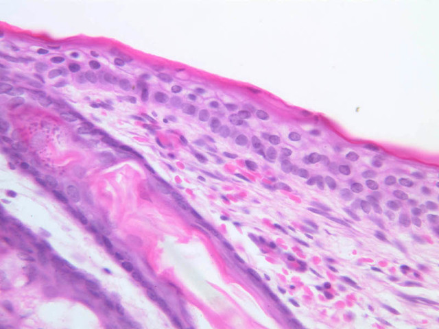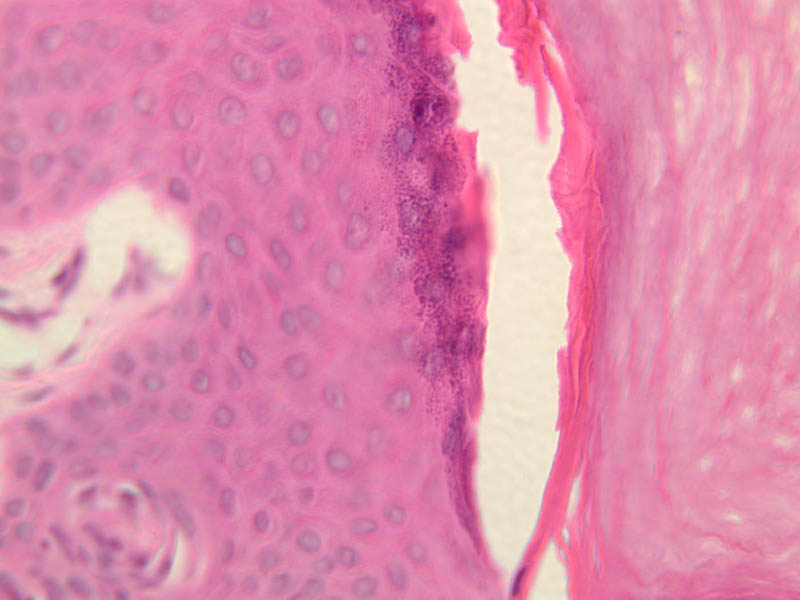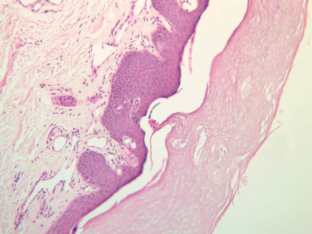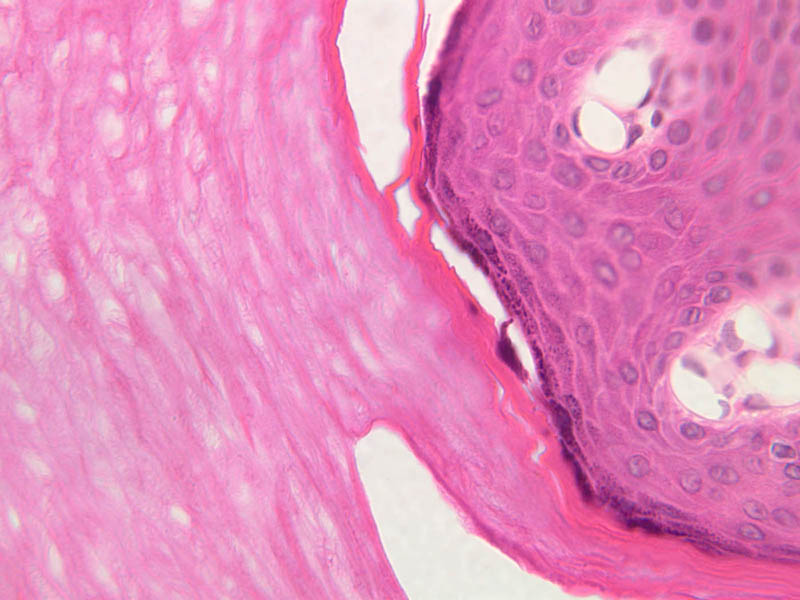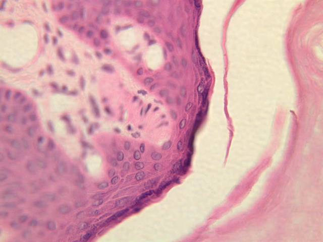 intracellular protein keratin. In many specimens, there is a separation artifact at this point.