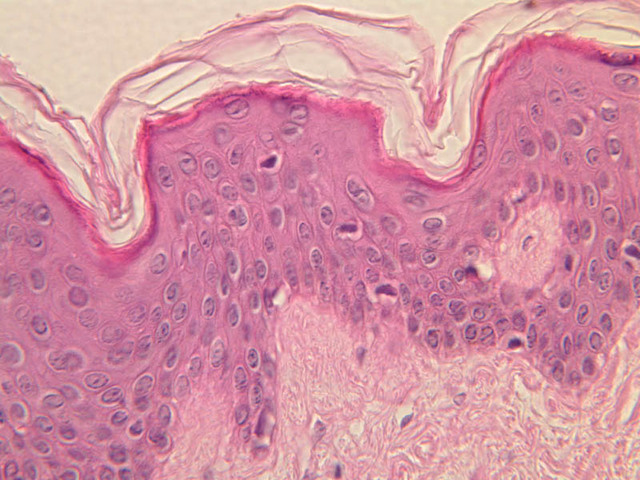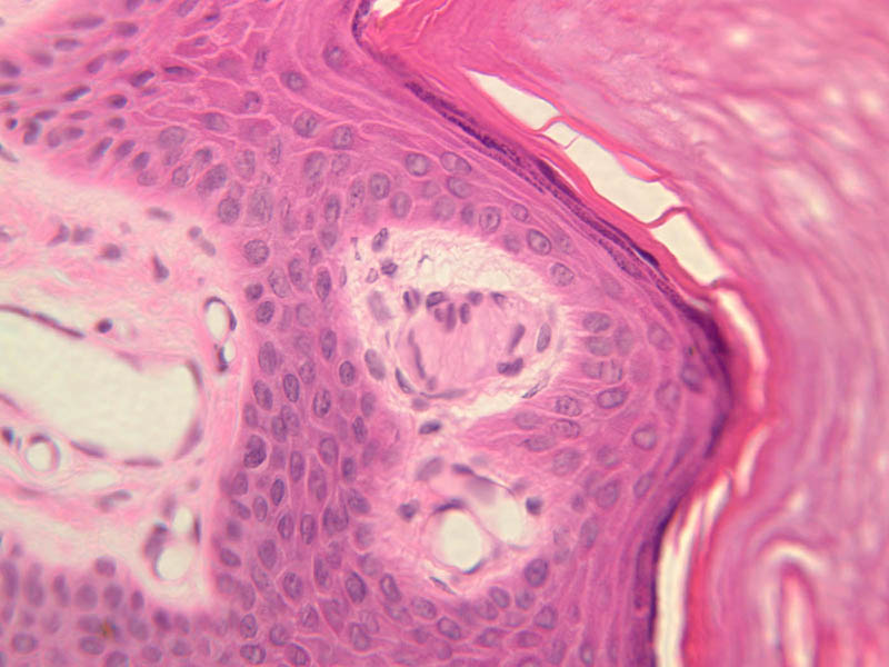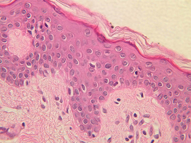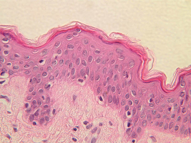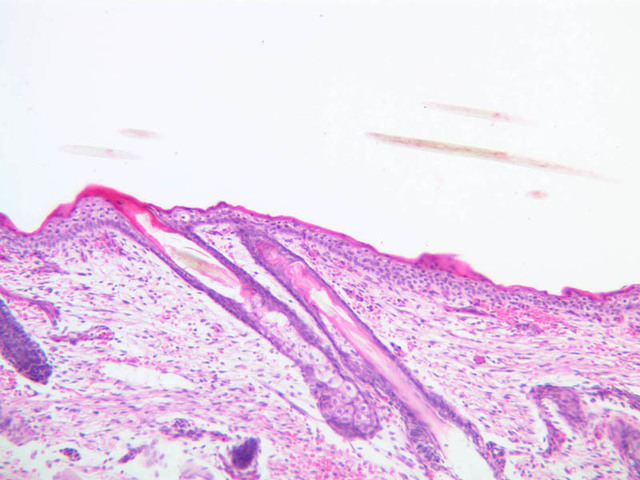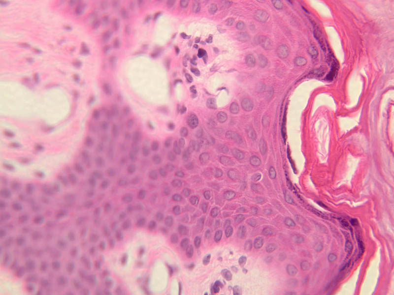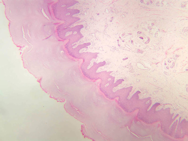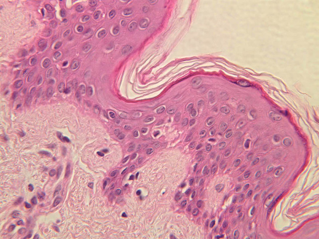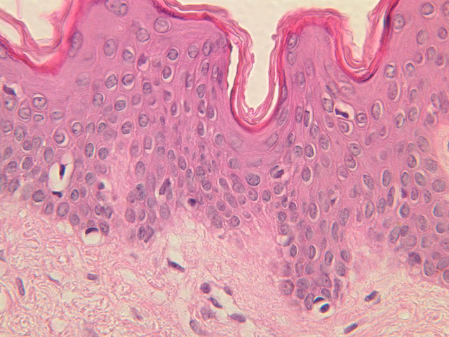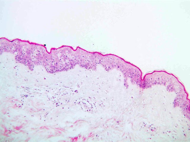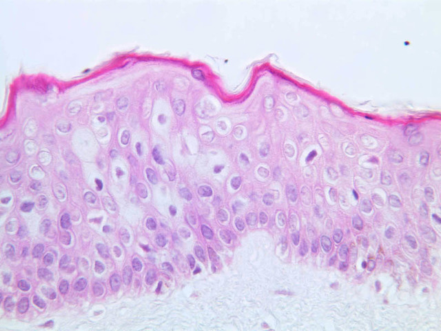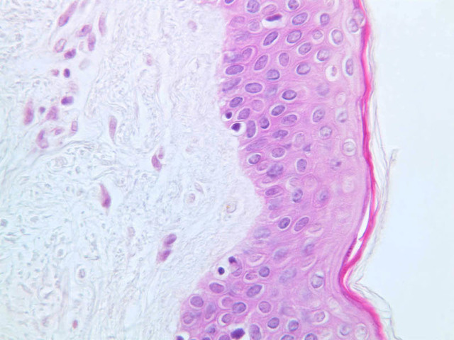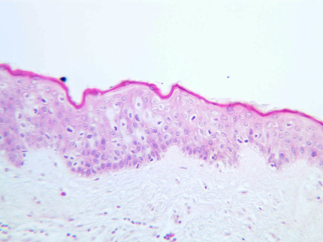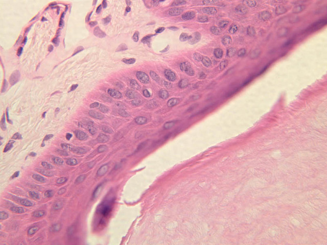 intracellular protein keratin. In many specimens, there is a separation artifact at this point.