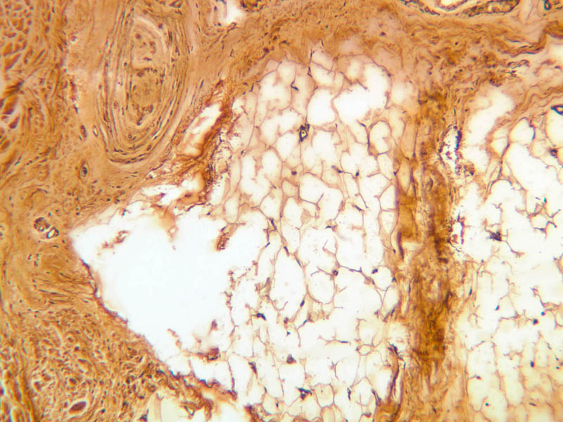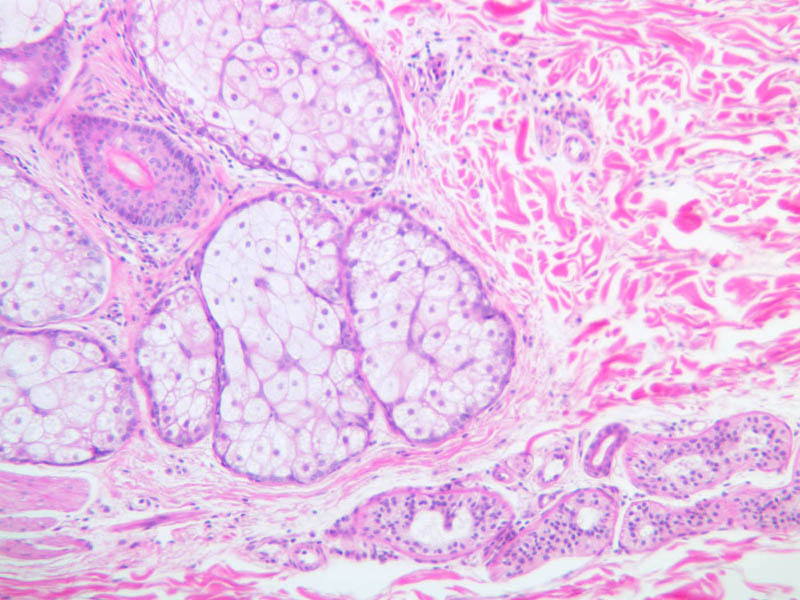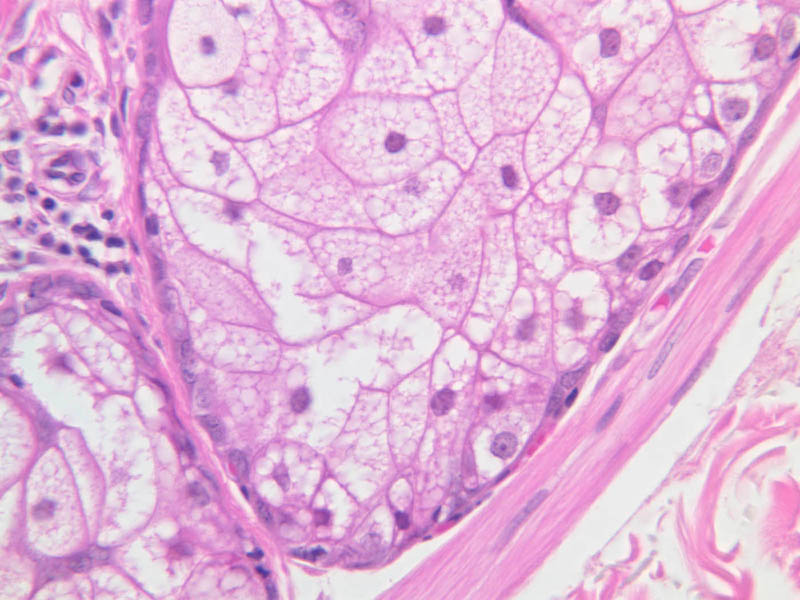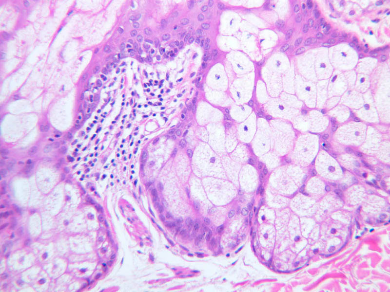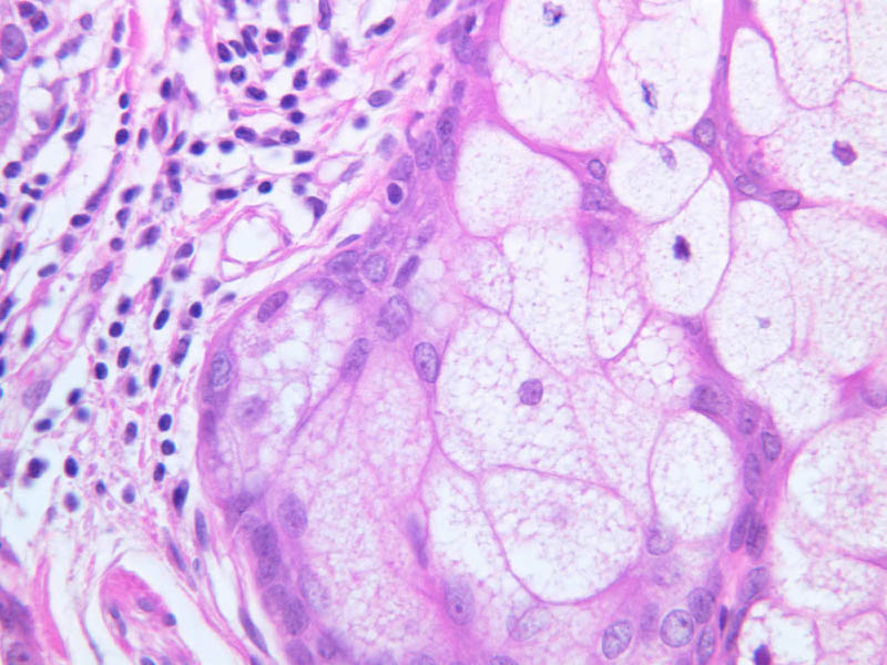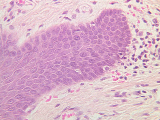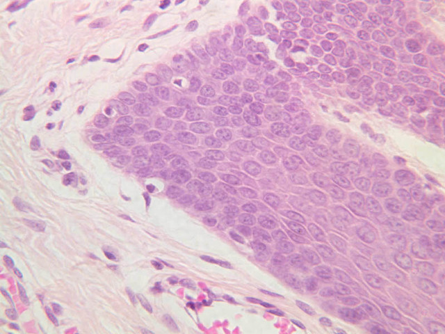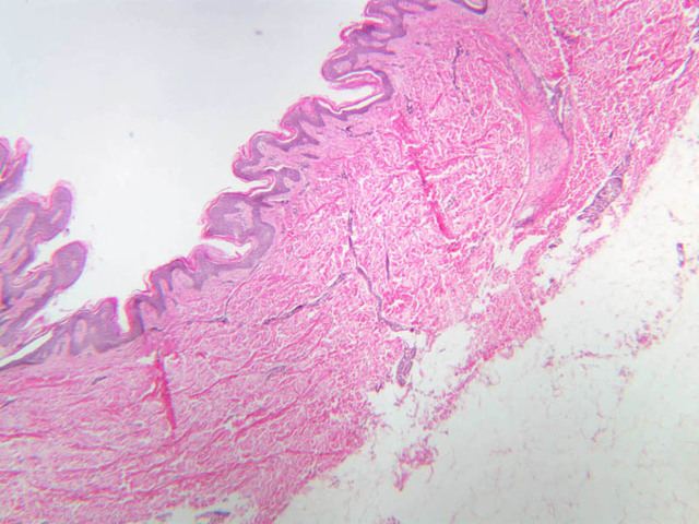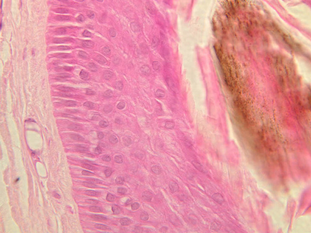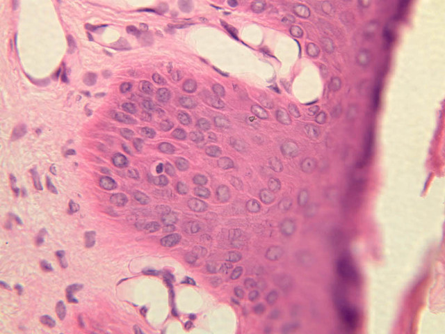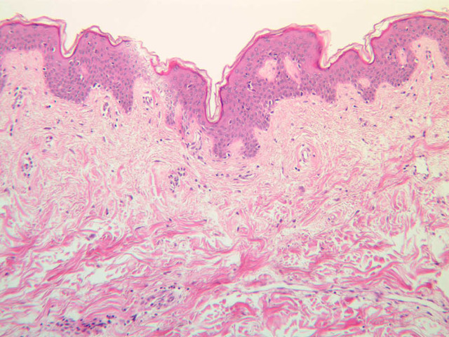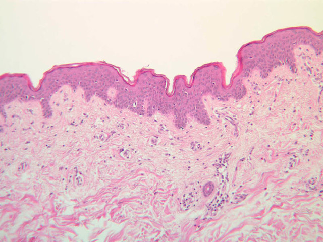 intracellular protein keratin. In many specimens, there is a separation artifact at this point.