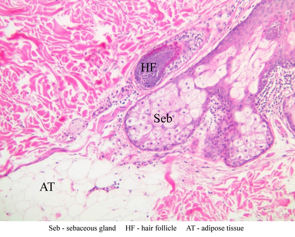 appendages are situated partially in the dermis and partially in the subcutaneous layer.
